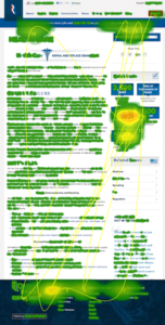 Using Attention Wizard and its eye-tracking algorithm, Hurst determined, with greater than 75 percent accuracy, where viewers’ eyes would go in the first five seconds of looking at these pages. Warmer colors show where viewers would pay more attention.