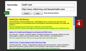 Overall both pages rated excellent (A+) for using best practices in search engine optimization, according to page reports by SEOmoz. Obama’s health care page comes up on the second page of a Google search for the term “health care.” Romney’s is on the fourth.